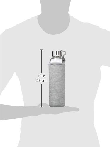 Ryaco Botella de Agua Cristal 550ml, Botella de Agua Reutilizable 18 oz, Sin BPA Antideslizante Protección Neopreno Llevar Manga y Cepillo de Esponja