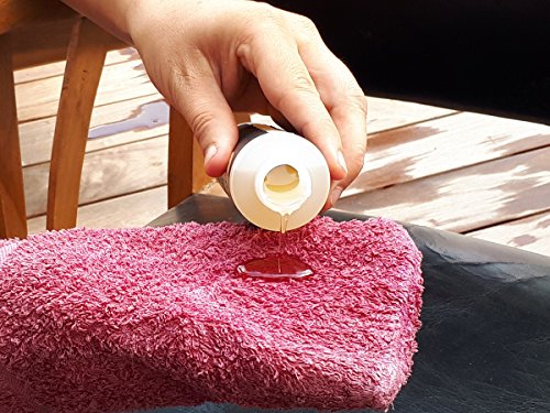 - Consejos de uso: aplicar 2 a 3 veces al año, preferiblemente con la ayuda de un guante de baño ligeramente empapado con aceite de comida. Deja que el producto penetre en la piel y frote para que vuelva a brillar.