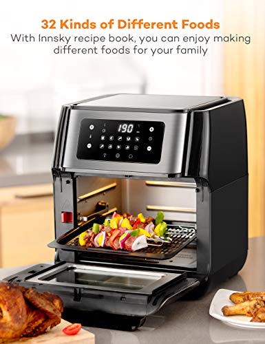 Innsky Freidora sin Aceite 10L 1500W Horno de Aire Caliente con 10 Programas, Pantalla LED Táctil, freidora de Aire Caliente con 6 Accesorios Gratis, Negro/Plateado (10 litros)