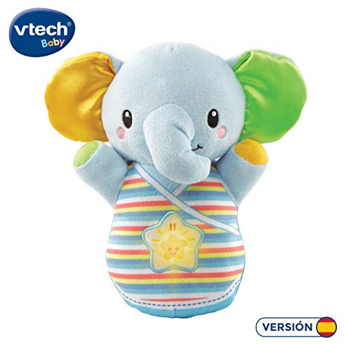 VTech-80-508622 Trompito, Elefante de Peluche para bebé, Musical, luz de Noche, con más de 45 Voces, Canciones y melodías, Color Azul, (3480-508322)