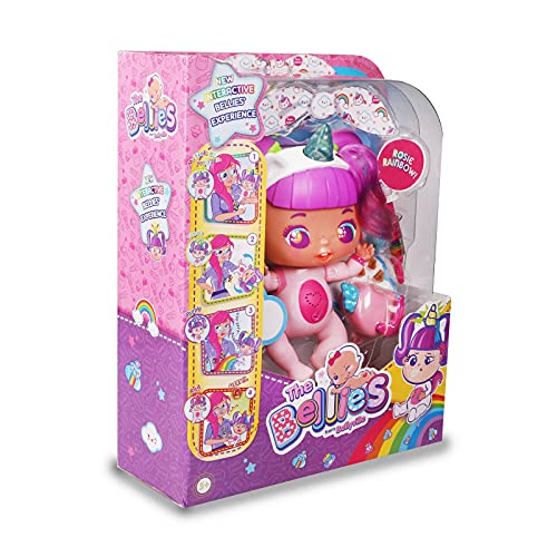 The Bellies from Bellyville - Rosie Rainbow!, muñeca interactiva grande big bellie, bebe unicornio cuerno y pelo rosa, con accesorio de vacuna, sonido y luz, niños desde 3 años, Famosa (700016632)