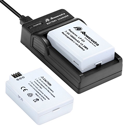 Powerextra Batería de Repuesto Canon LP-E5 7.4V 1800mAh Reemplazo Batería y Cargador para Canon EOS Rebel XS Rebel T1i Rebel XSi 1000D 500D 450D Kiss X3 Kiss X2 Kiss F
