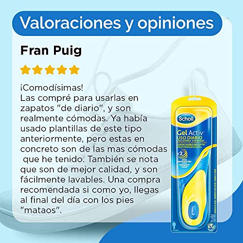Scholl Plantillas Gel Activ Uso Diario para mujer, para el dia a dia, mayor comodidad y absorción del olor y sudor, talla 35.5 - 40.5, 1 par (2 plantillas)