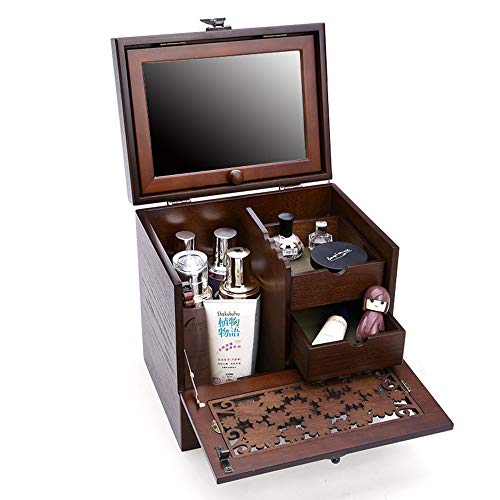 Gran Capacidad De Madera Caja De Almacenamiento CosméTica Retro Caja De Almacenamiento De CosméTicos Boda Regalo De CumpleañOs De Gran Capacidad con Espejo De Alta DefinicióN