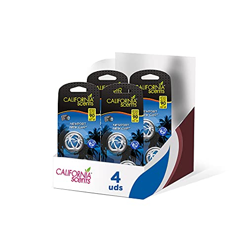 California Car Scents - Pack de 4 - Ambientador de Coche con Fragancia, Olor y Esencias a Newport New Car, Olor a Aroma de Coche Nuevo (Ambientador en Lata 42 Gramos)