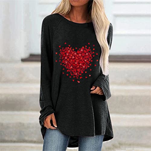 2022 Día de San Valentín Camiseta de Manga Larga Mujer, Moda Impresión Blusa Cuello redondo camisa Largo basica Camiseta Suelto primavera Tops Casual T-Shirt fiesta Elegante original Sudadera tee