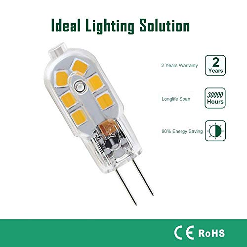 KDP Casquillo G4 Bombilla LED - 2W/200LM, equivalente a 20W, Blanco Cálido 3000K, DC/AC 12V, no regulable, Pack de 10