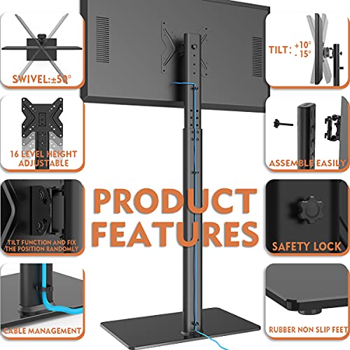 - Soporte de suelo multifuncional: Mi soporte de TV funcional dispone de un ajuste de altura de 8 niveles para elegir el mejor espacio. Además, el soporte giratorio de -50 hasta +50 grados puede elegir la mejor pantalla para entretenimiento de TV para disfrutar de su visión