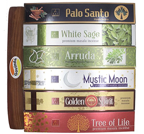 - 7 elementos – Juego de 6 variedad de incienso de Balaji con 1 govinda incienso soporte de madera.