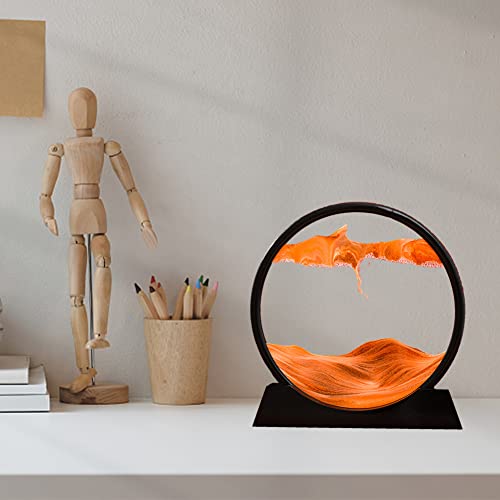 Pintura de Arena Que Fluye, Cuadros de Arena 3d, Marco de Arena de Vidrio Redondo 3D, Imagen de Arena Dinámica, Pintura de Arena en Movimiento, Cuadros de Arena Relajantes(Size:18×19 CM,Color:naranja)