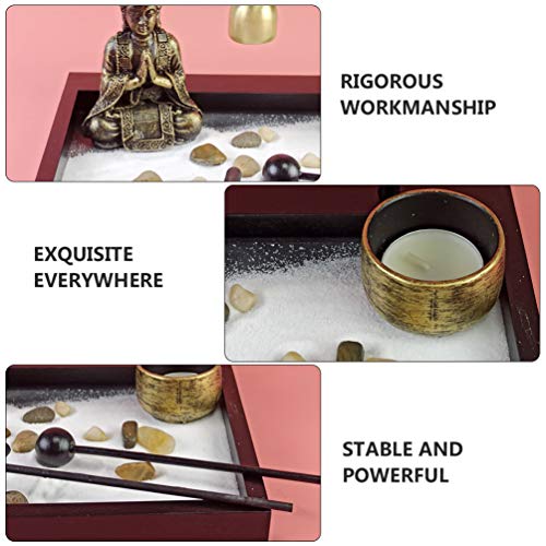 GARNECK Kit de Jardín de Arena Zen Estatua de Buda Quemador de Incienso Soporte Rastrillo Japonés Mini Jardín de Rocas Oficina en Casa Decoración de Escritorio
