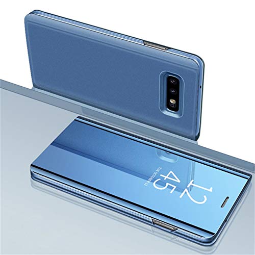 Funda Samsung Galaxy J5(2017), Flip Tapa Libro Carcasa - Modelo Fecha y Espejo Brillante tirón del Duro Case,Espejo Soporte Plegable en Reflectante para J5 2017 (Azul)