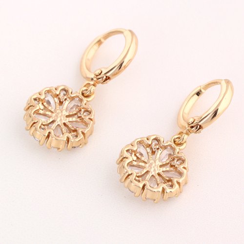 Diseño de flores de tamtam Design Yazilind 14 K incrustaciones en oro en forma y circonitas cúbicas Juego de pendientes largos con forma Drop para mujer