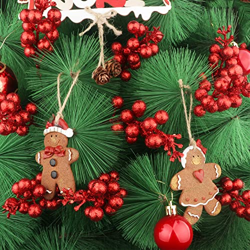 TUPARKA 24 Piezas Pequeñas selecciones de Pino Artificial con Bayas Rojas para Adornos navideños Decoración de guirnaldas, Cinta navideña y Cuerda de cáñamo para Bolsas de Regalo Decoraciones