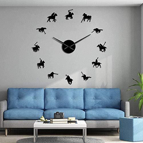 BBNNN AcrylicWall Clock DIY Frameless Big 3D Polo Polo Sport Pony Competition Sticker Wall Giant Wall Clock Polo Rider Frameless Large Table Polo Player Gift 37 Inches Black