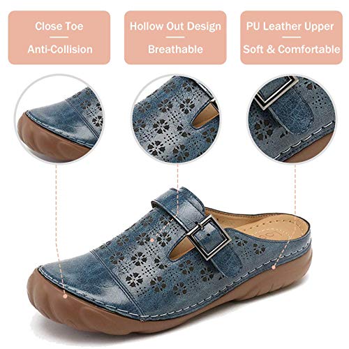 NUHEEL Zuecos Mujer Mules Cuero Cómodos Zapatillas de Playa Verano,Sandalias con Plataforma Sandalias de Cuña,Punta Cerrada Fuera Confort Slip on Zapatos Antideslizantes Casuales Azul 43 EU