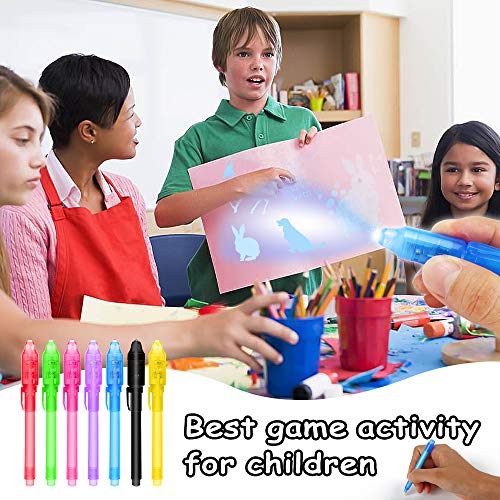 - Invisible Ink Pen: tinta inofensiva y sin sabor, juguetes saludables para tus hijos, tintas suaves y coloridas que desaparecen en camisetas, papel, piel y cualquier superficie. ¡Permanente pero lavable!