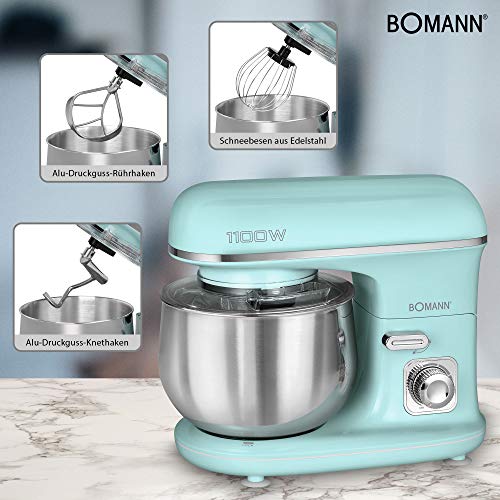 Bomann KM 6030 CB Batidora amasadora repostería Capacidad de 5 litros, Velocidad Regulable electrónica, Serie Rock & Retro Estilo Vintage, 1100 W, Verde Menta