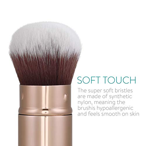 - TAPA INCLUIDA: Viene con una tapa protectora que mantendrá el cepillo Kabuki retráctil limpio y protegido. La tapa asegura que las cerdas con corte redondeado no se dañen, algo fundamental para un acabado perfecto.