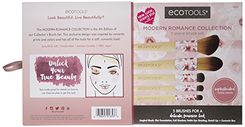 - La colección Modern Romance tiene las perfectas herramientas para lograr un aspecto delicado, femenino.Incluye brocha en ángulo, brocha para base, brocha para sombra de ojos, labios y pequeñas brochas. Maravillosamente suaves, con mangos de bambú y materiales reciclados.