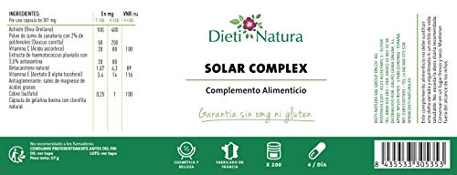 Solar Complex 200 cápsulas de Dieti Natura. Broncea y prepara la piel para el verano [Fabricado en Francia][Garantía Sin OGM ni Gluten] (Bote de 200 cápsulas)