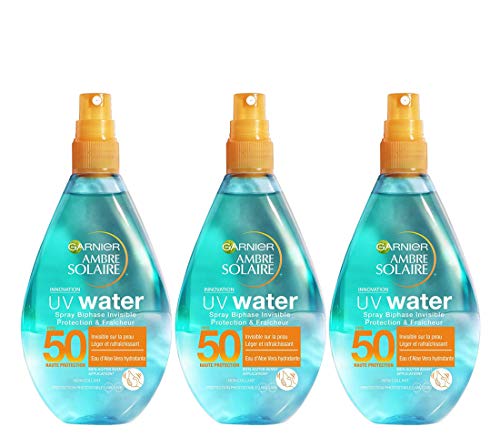 Garnier Ambre Solaire – Spray bifásico invisible protección y frescor FPS 50 – 150 ml – Lote de 3