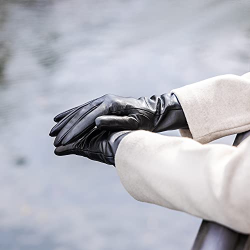 Downholme Guantes de Piel con Forro de Cachemira – Guantes para Pantalla Táctil – Guantes de Invierno para Mujer (Negro, S)