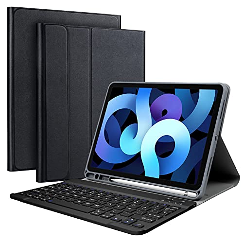 Olycism Funda con Teclado Español Ñ para iPad Air 10.9" 2020 (4.a generación)/iPad Pro 11 2020/2018 (1.ª y 2.ªgeneración), Desmontable Teclado Bluetooth para iPad Air 4 10.9 (Black)
