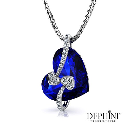 DEPHINI - collares mujer - collar niña con colgante corazon con pequeñas circonita y plata de ley 925 18 cm cadena - azul SW Cristal - Regalo corazón collares madre e hija