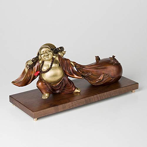 Latón Permanente Buda de risa la celebración de figuras Bolsa de dinero for el Feng Shui buena suerte y felicidad (9,1 pulgadas)