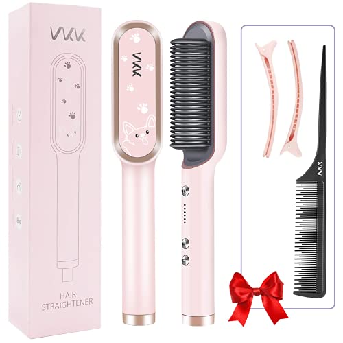 VKK Cepillo Alisador De Pelo, Peine Alisador De Cabello Electrico Para Cabello, Calefacción PTC Anti-Quemaduras Cepillo Plancha Pelo, Temperatura Constante, Rosa