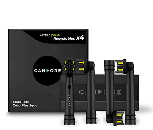 Candore Cabezales Pulse One Negro Carbon Infused - Lote 4 - 100% Reciclable, Acción Interdental, Recambios Compatible Con Oral-b