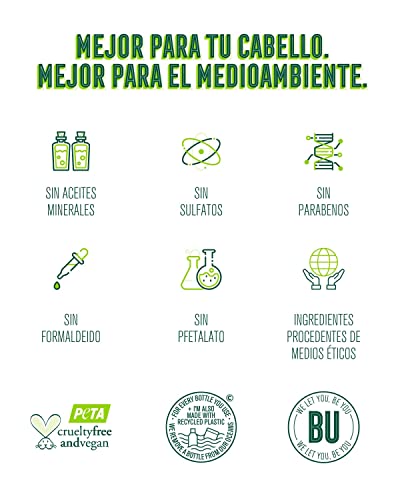- Sin Sulfatos, Sin Parabenos, Sin Siliconas, Sin Alergenos, Sin Colorantes, Sin Alcohol, Sin Ftalatos y Sin Almizcles Policíclicos