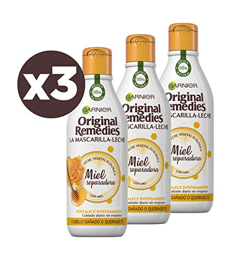 Garnier Original Remedies La Mascarilla - Leche Miel reparadora para pelo dañado y quebradizo - Pack de 3 x 250 ml