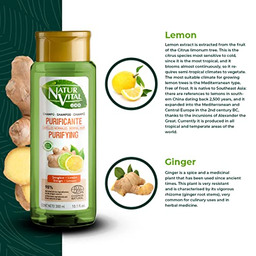 NaturVital Champú Eco Purificante | con Jengibre y Cítricos de cultivo Bio certificado| Sin Parabenos ni Siliconas - 300ml