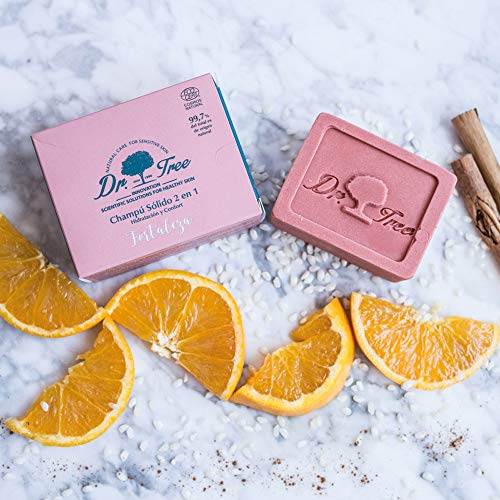 Dr.Tree Fortaleza 2 en 1 - Champú Sólido + Acondicionador Ecológico. Limpia, Hidrata y Energiza, Cabello fino y Débil o Caída, Champú sin SLS, 1 Pastilla = 900ml, 99% Ingred. Naturales ECOCERT