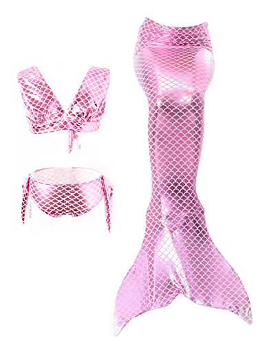 Le SSara Chicas Cosplay Halter cuello traje sirena concha baño 3pcs Bikini establece (130, C-rosa)