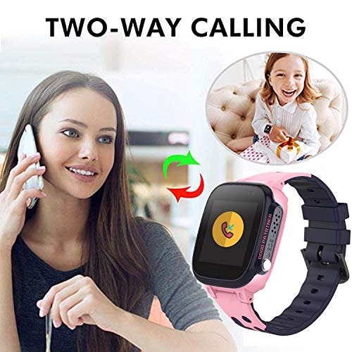 PTHTECHUS Niños Smartwatch, Reloj Inteligente Phone con LBS Tracker SOS Chat de Voz Cámara Despertador Juego Cálculo para Regalos Estudiantes Compatible con iOS Android (01 LBS SOS Rosa)