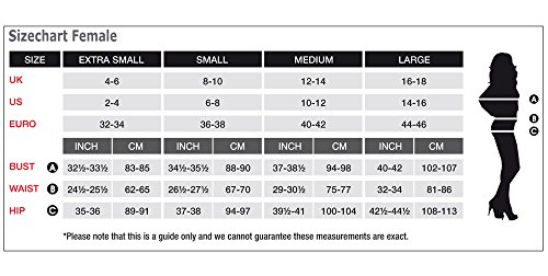 - Busto 40-42" / cintura 32-34" / cadera 42.5-44.5" / entrepiernas 33"