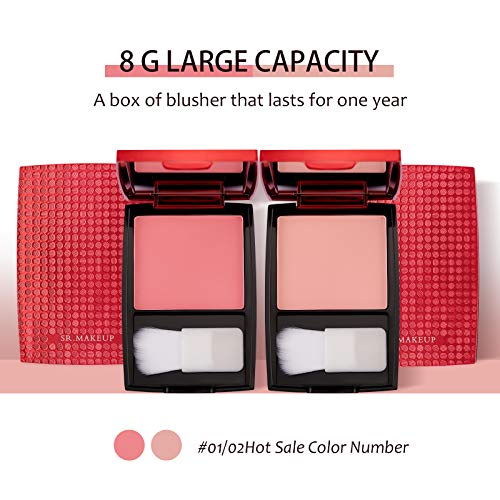 Mimore Maquillaje colorete monocromático mate, rubor en polvo suave de color de larga duración, rubor en polvo Sculpt Rose, brocha en polvo para rubor en polvo microfino y espejo incluidos(02)