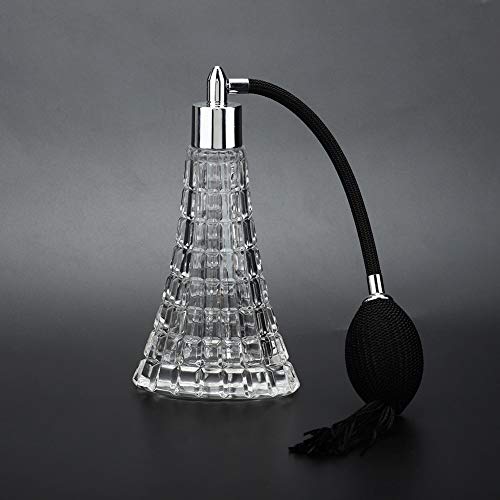 Botella de perfume de vidrio recargable con rociador de bombilla negro antiguo con borla de 75 ml, Frasco de perfume vintage de vidrio recargable vacío con pulverizador de bulbo negro antiguo
