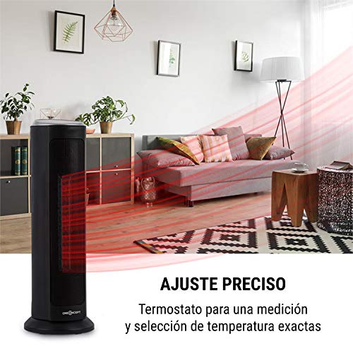 - OSCILADOR: La oscilación del Heat Spire de oneConcept distribuye el aire caliente en la habitación de manera eficiente y acelera así el proceso de calentamiento. El calor deseado se puede ajustar entre 15 y 35 °C en grados.
