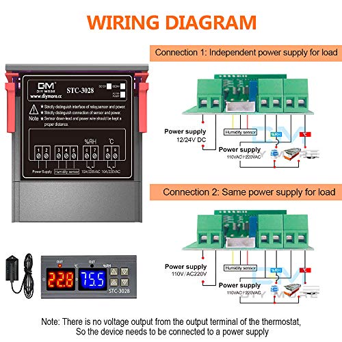 Diymore Termostato Controlador de Temperatura y Humedad Digital STC-3028 AC110V-220V Deshumidificador Calentador con AM2120 Sonda Refrigerador Humidificador Deshumidificador