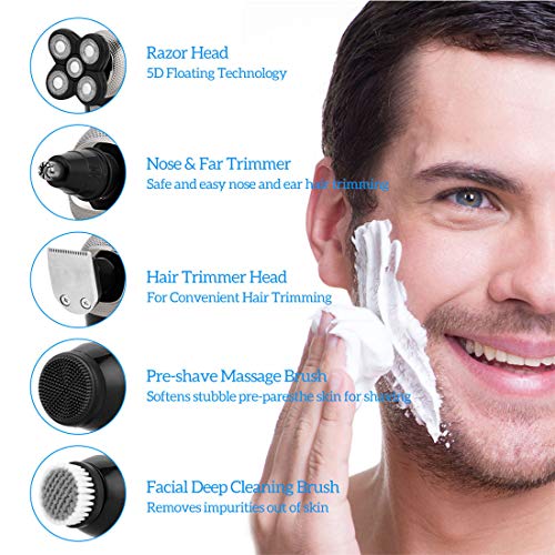 - 【Diseño Multifuncional 5 en 1】--5 cabezales reemplazables diferentes para todas sus necesidades de aseo, incluida 1 afeitadora de barba, 1 cortapelos, 1 recortador de nariz, 1 cepillo de limpieza de silicona y 1 cabezal de cepillo de cerdas.
