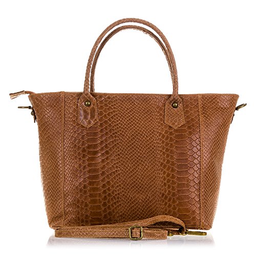 Firenze Artegiani Bolso Tote de Mujer en Piel auténtica, Acabado Grabado Serpiente y Lacado, 36 cm, Marrón