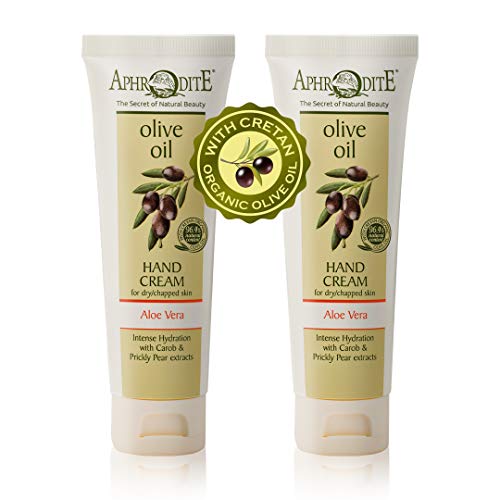 Set de crema de manos Afrodita. Crema de manos de hidratación intensiva elaborada a partir de aceite de oliva griego con aloe vera. Crema de manos para manos muy secas / manos agrietadas (75 ml)