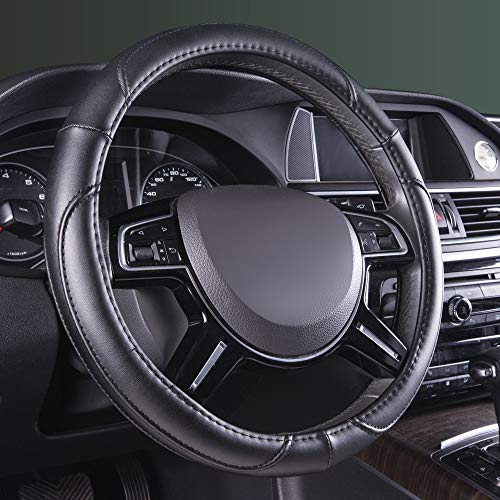 Amazon Basics - Cubierta para volante de cuero sintético, 38 cm (38,1 cm), negro