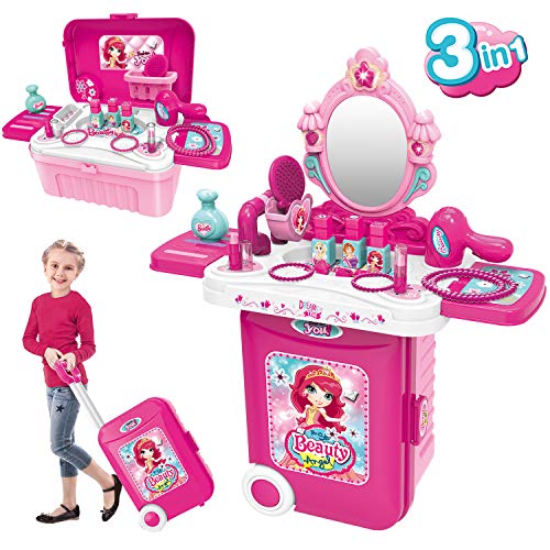 Dreamon Maleta de Maquillaje Conjunto MaletĂn de Juegos 3 en 1 Tocador con Accesorios Espejo con luz para niños