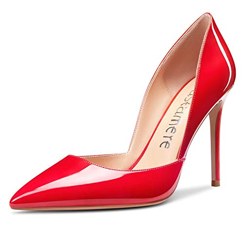 CASTAMERE Zapatos de Tacón Mujer Moda D'Orsay High Heels Puntiagudas Tacón de Aguja 10CM Rojo Charol Zapatos EU 40