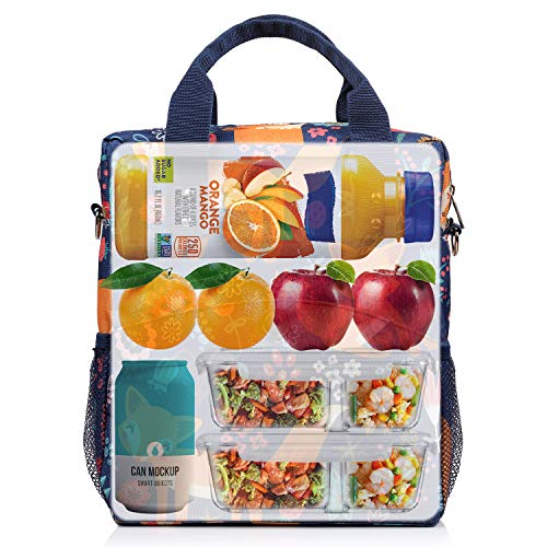 - Diseño: el espacio es suficiente,puede llevar fiambreras,tuppers, frutas y otros alimentos. Los bolsillos laterales de ambos lados es de malla, que adecuado para llaves,móviles y objetos pequeños. Segun las diferentes temperaturas,se puede mantener de 4 a 8 horas de aislamiento.